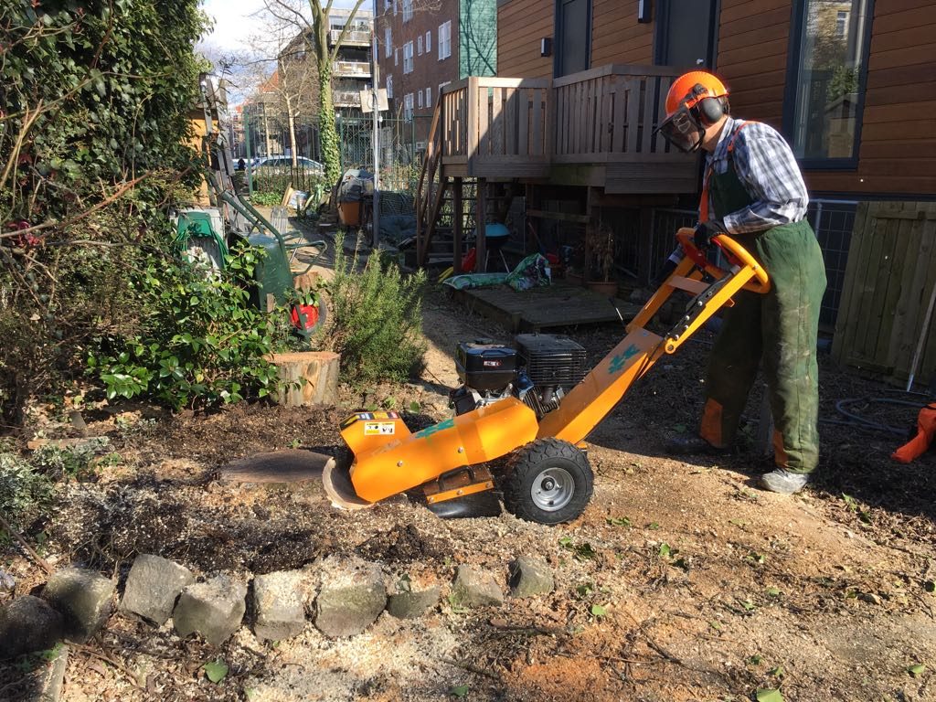 Voor het frezen van een boomstronk in Den Haag moest de stronkenfrees door het huis naar de achtertuin. Dit ging …