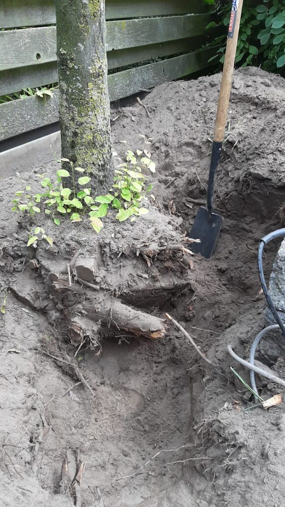 Twee boomstronken verwijderd. Want de klant wilde er een mooi terras en overkapping aanleggen en daarvoor stonden de boomstronken in …