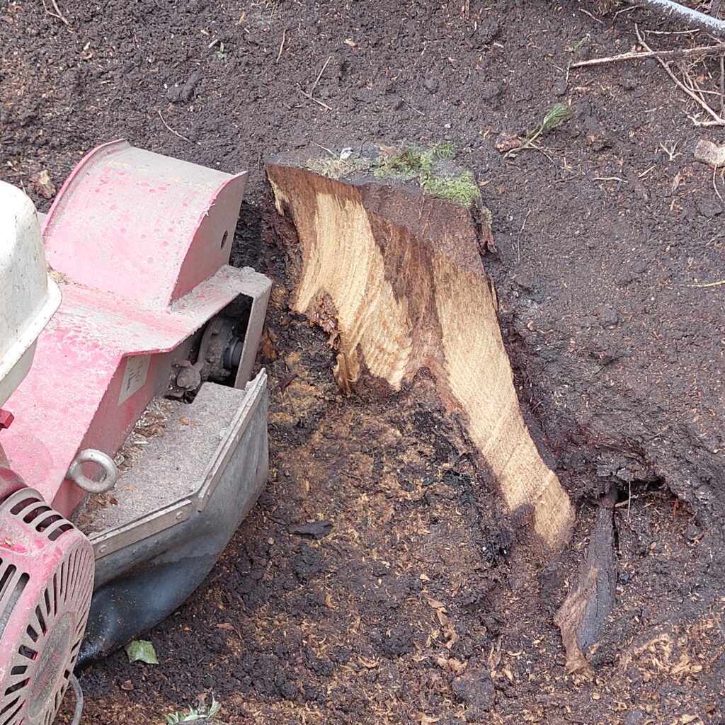 Boomstronken verwijderen met een stobbenfrees ook wel boomstronkfrees genoemd
